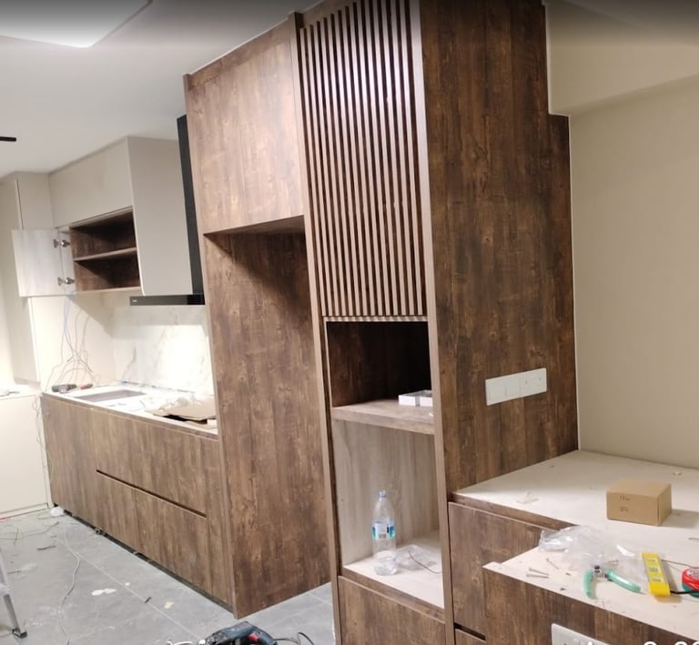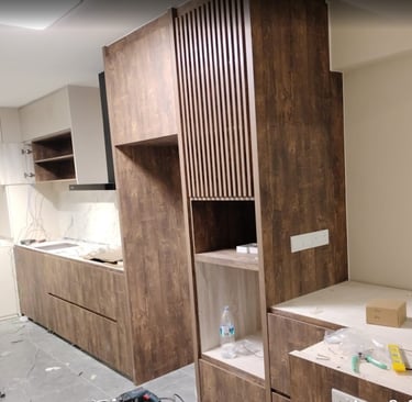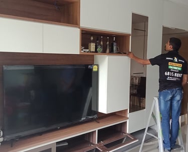 "Handyman.sg our carpentry services encompass the design, construction, and installation of custom wooden features for your home. This includes creating and installing kitchen cabinets tailored to your space and needs, building fitted wardrobes for optimal storage solutions, and crafting stylish and functional vanity cabinets for bathrooms. We focus on quality craftsmanship and attention to detail to enhance your living spaces."