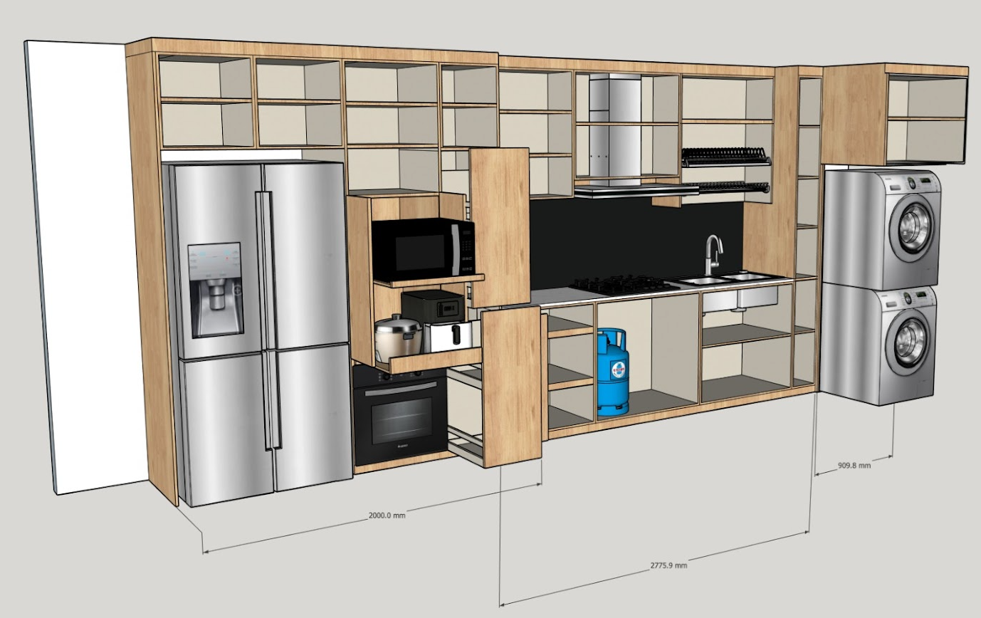 To explain to the client each component of the design, from the washing area, cooking area, meal preparation area, pantry, and even the serving area.