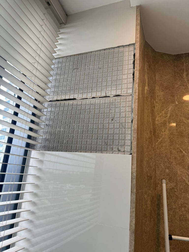 Hacking of tiles and concrete wall