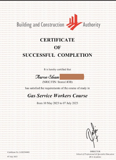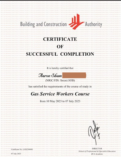 Complete the Gas Service Workers (GSW) Course (or GSW Restricted course) offered by training providers like BCA Academy or City Energy.