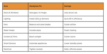 🧩 Quick Checklist — Handyman Fixes That Lower Energy Use