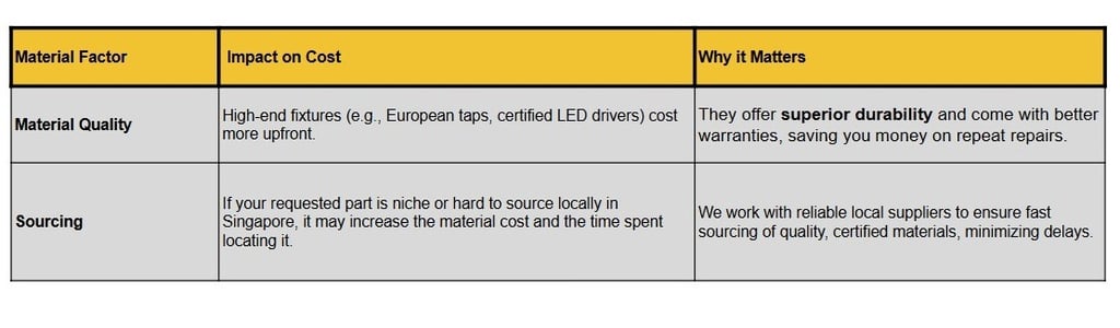 Specialised Tools: Tasks that need specific, professional equipment, like drilling through reinforced concrete walls in older HDB flats, affect the time and hence the cost.