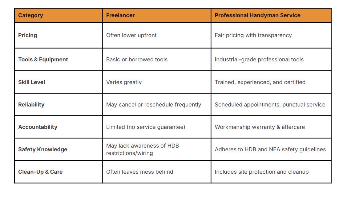 At Handyman Singapore, for instance, we back every job with follow-up support because quality doesn’t end when the invoice is signed.
