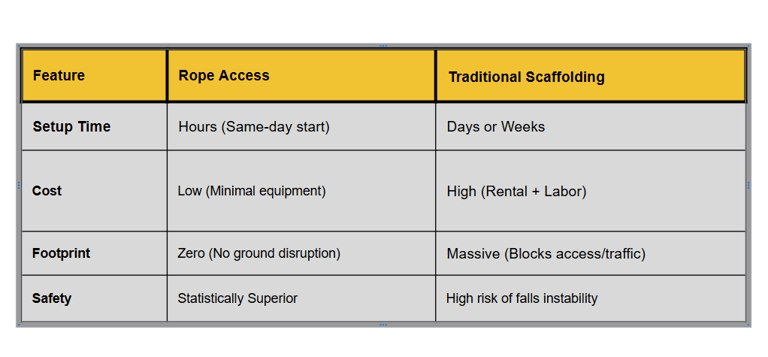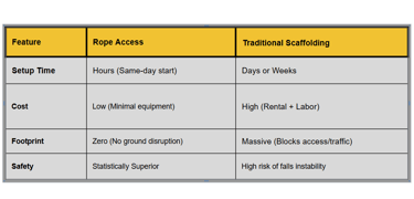 Professional rope access services for high-rise window cleaning and facade maintenance