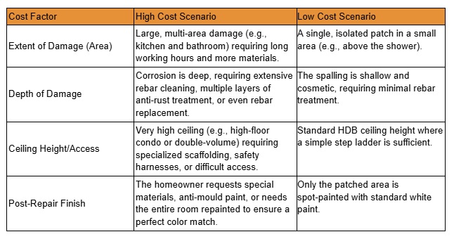 Homeowner's Responsibility: The HDB states that spalling concrete is a maintenance issue, not a structural defect of the entire building. Therefore, the flat owner is responsible for the prevention and repair of any spalling within their unit.