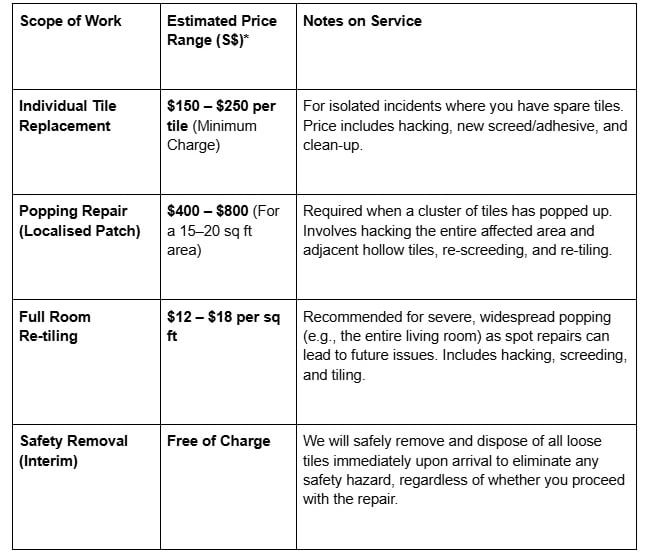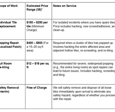 Tile popping is a structural integrity issue that demands professional attention. By choosing Handyman.sg, you get: