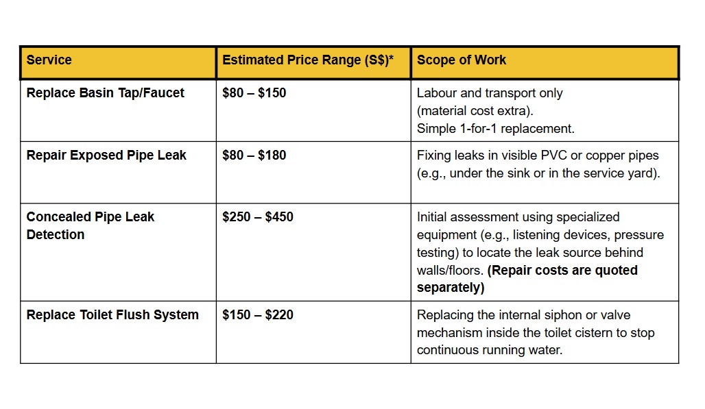 This guide details the difference between simple DIY fixes and professional jobs, and gives you a clear price range for the most common plumbing headaches in Singapore homes.