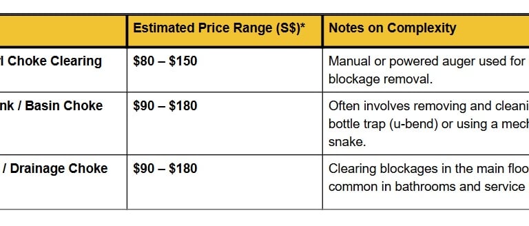 The cost for plumbing services in Singapore is generally determined by the complexity of the choke/leak and whether it involves breaking through walls or floors